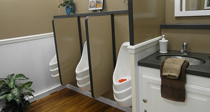 This Luxury Cottage Mobile Restroom Trailer is beautifully appointed with Wood Grain Floors. Your guest will find comfort within the air conditioned trailer.