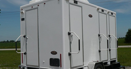 A 12′ x 7′ unit with cottage interior, individual entry doors, 3 individual restrooms with sink and mirror. Also has 1 male restroom with urinal, sink and mirror. LED interior lights and vanities with solid surface tops and stainless steel bowls.